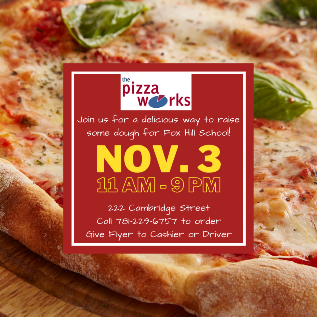 When you call to place your order, mention Fox Hill Fundraiser. Present the flyer to the cashier when you check out or to the delivery driver and 20% of the proceeds will be donated to Fox Hill Elementary School. (Flyers will be emailed and sent home on Friday, October 30th.)