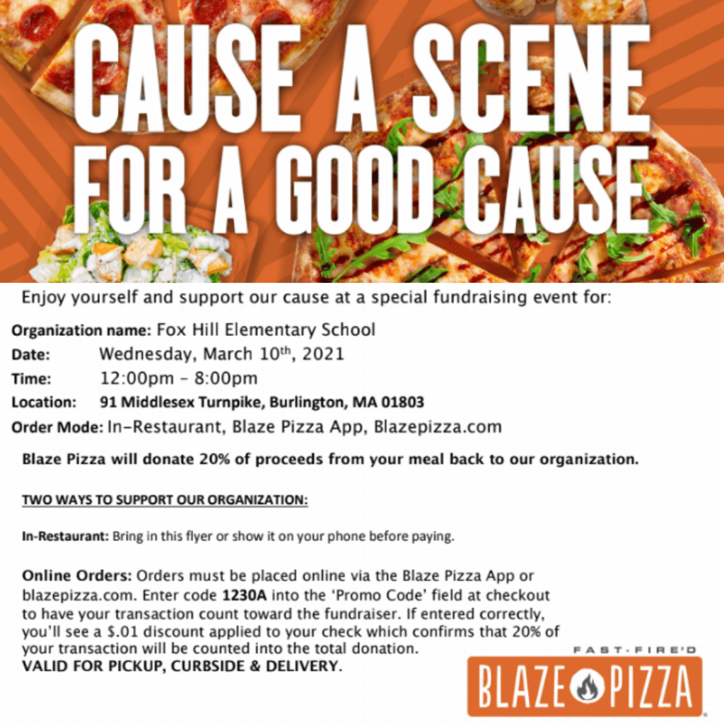 Join us on March 10th for our next PTO Fundraising Event at Blaze Pizza!