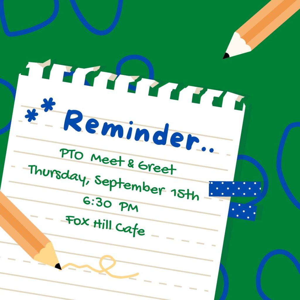 Fox Hill PTO Meet & Greet this Thursday, 9/15 @ 6:30 PM in the Cafe.
