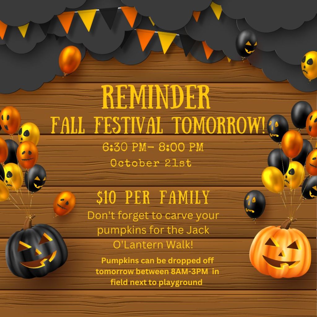 REMINDER!!! We hope to see you all at the Fox Hill Fall Fest tomorrow night! Don’t forget to carve your pumpkins for the Jack O’Lantern Walk! 🎃Pumpkins can be dropped off at the field next to the playground tomorrow between 8 AM and 3 PM.