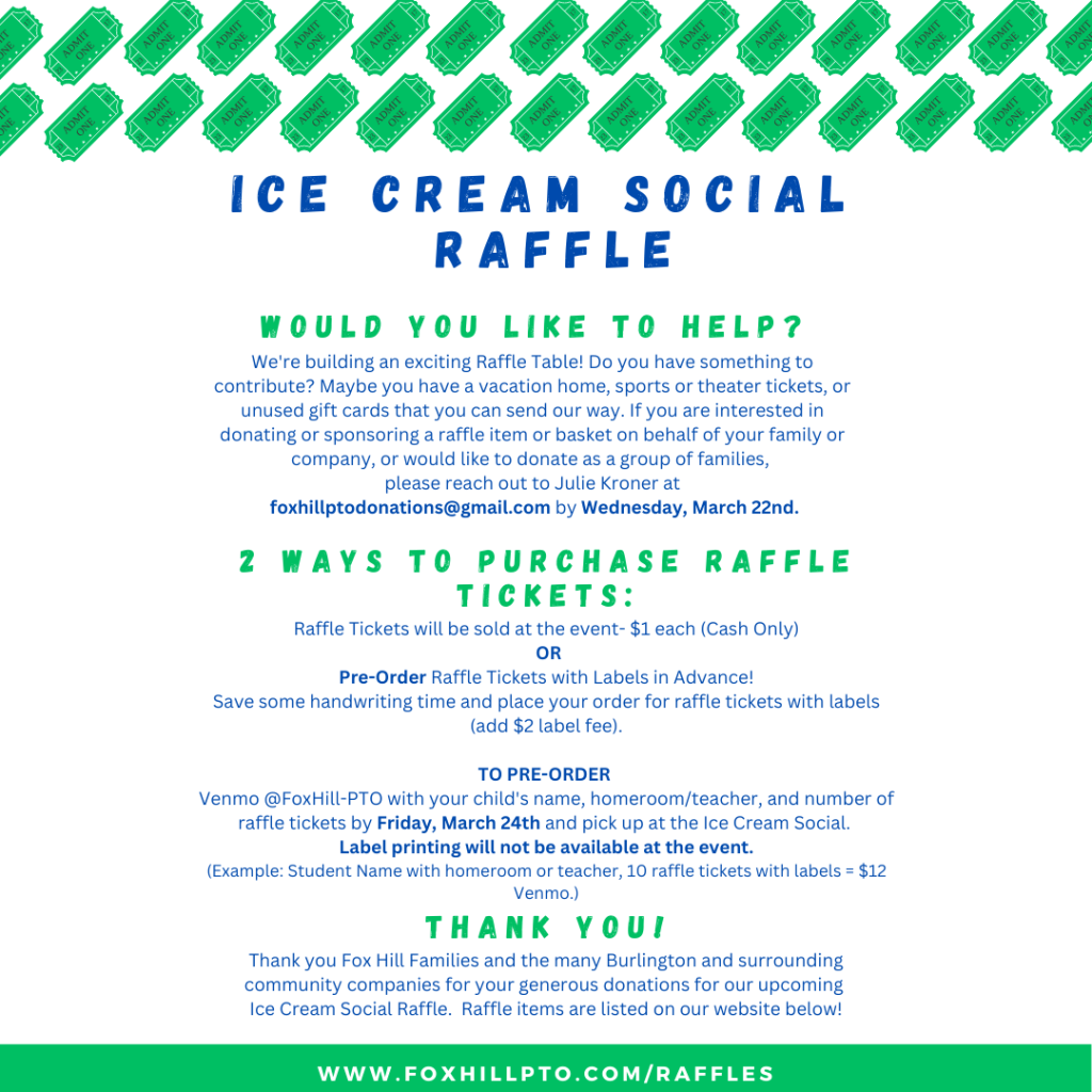 We have an amazing raffle that will take place at the Ice Cream Social on March 29th! 🎟️