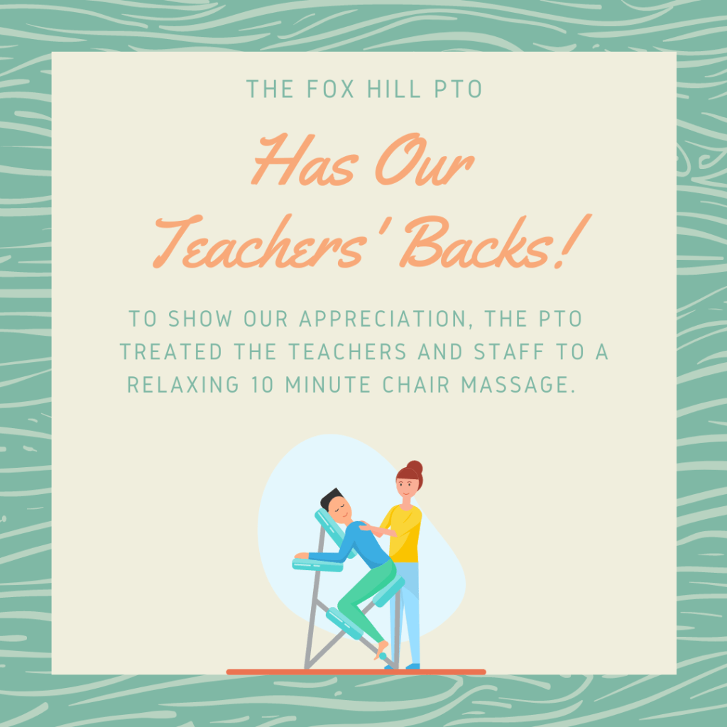 To show our love and support for our teachers, the PTO arranged for massage therapists to come to the school this week!