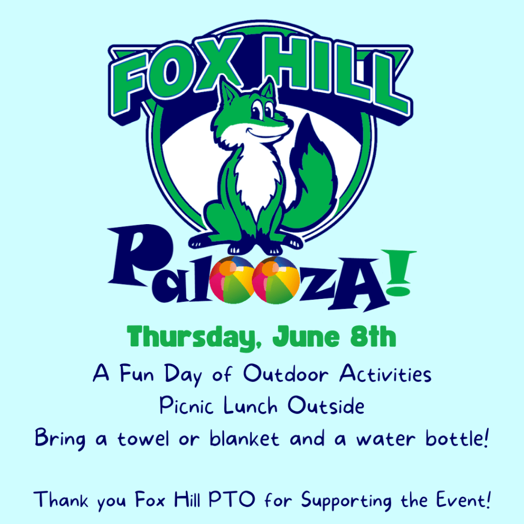 On Thursday, June 8th we will be celebrating Fox Hill Palooza! Students will have the opportunity to participate in some fun and exciting outdoor activities that include