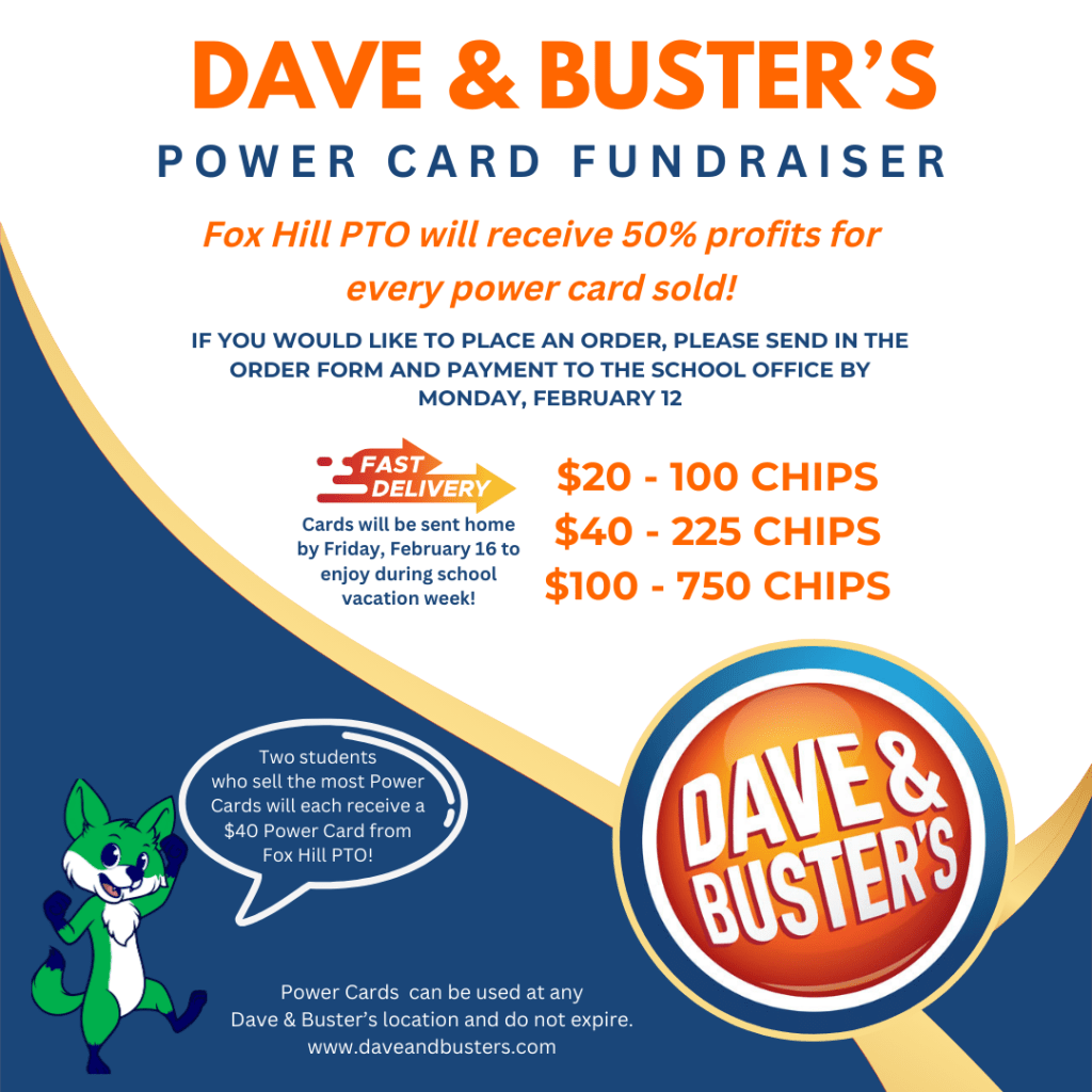 Fox Hill PTO will receive 50% profits for every power card sold!