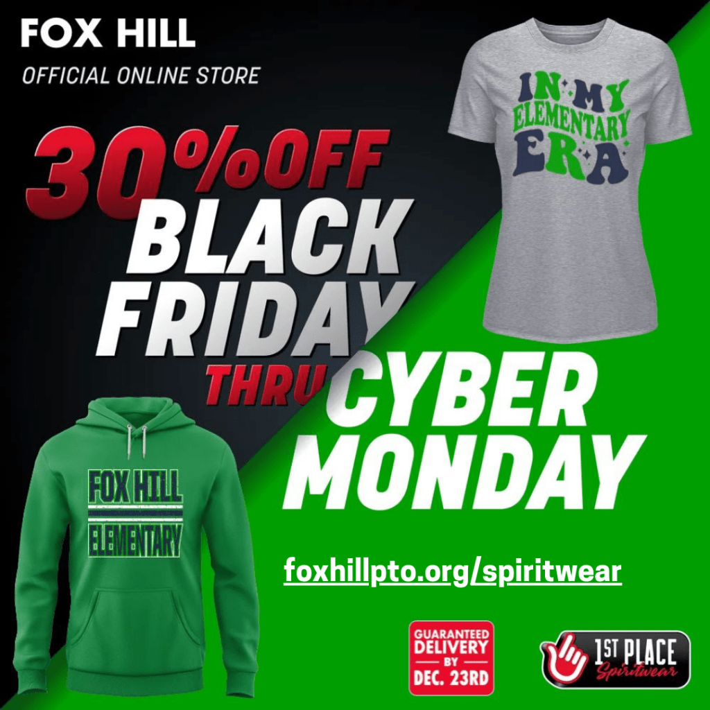 Save 30% sitewide Black Friday – Cyber Monday with the Holiday Spiritwear Sale! Choose from a wide variety of items, all with home delivery guaranteed by December 23rd.