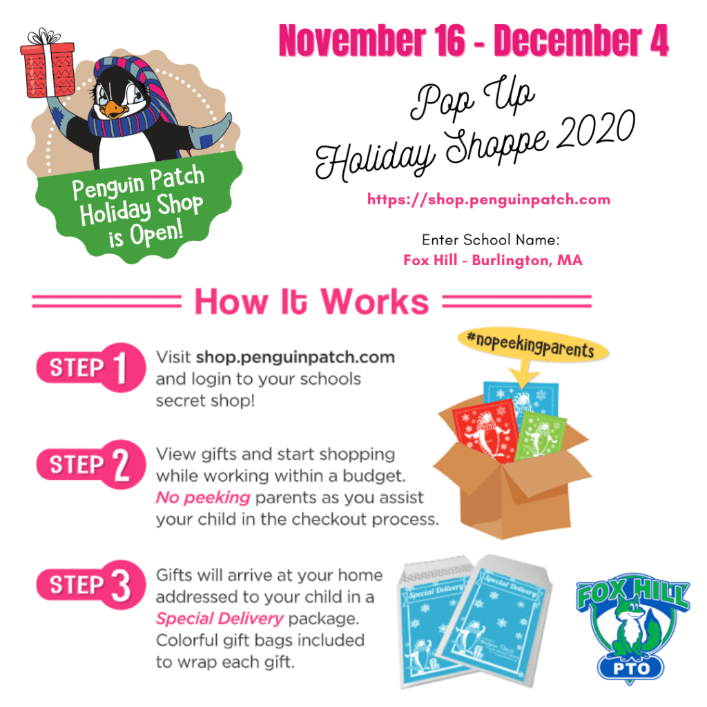 Should you have any questions, please contact Wendy Geist at 617-548-3775 or email us at foxhillpto@gmail.com.